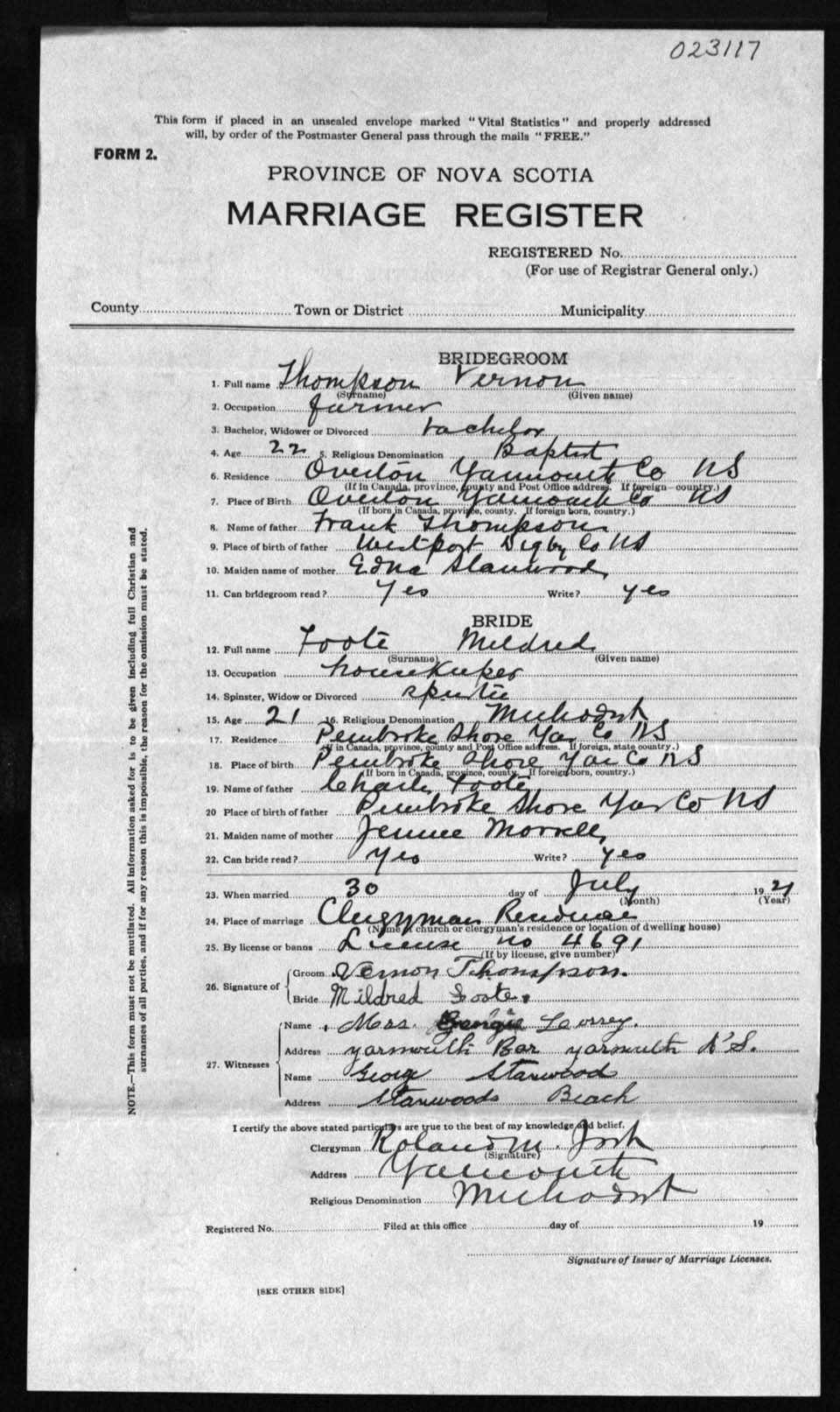 Registration: Year: 1921 number: 23117