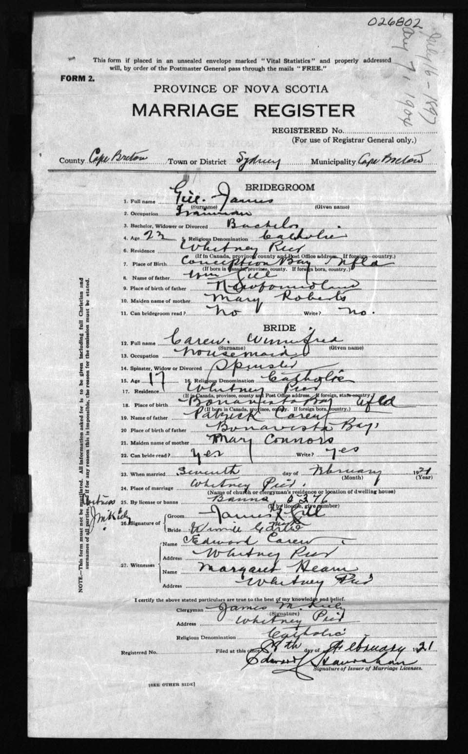 Registration: Year: 1921 number: 26802