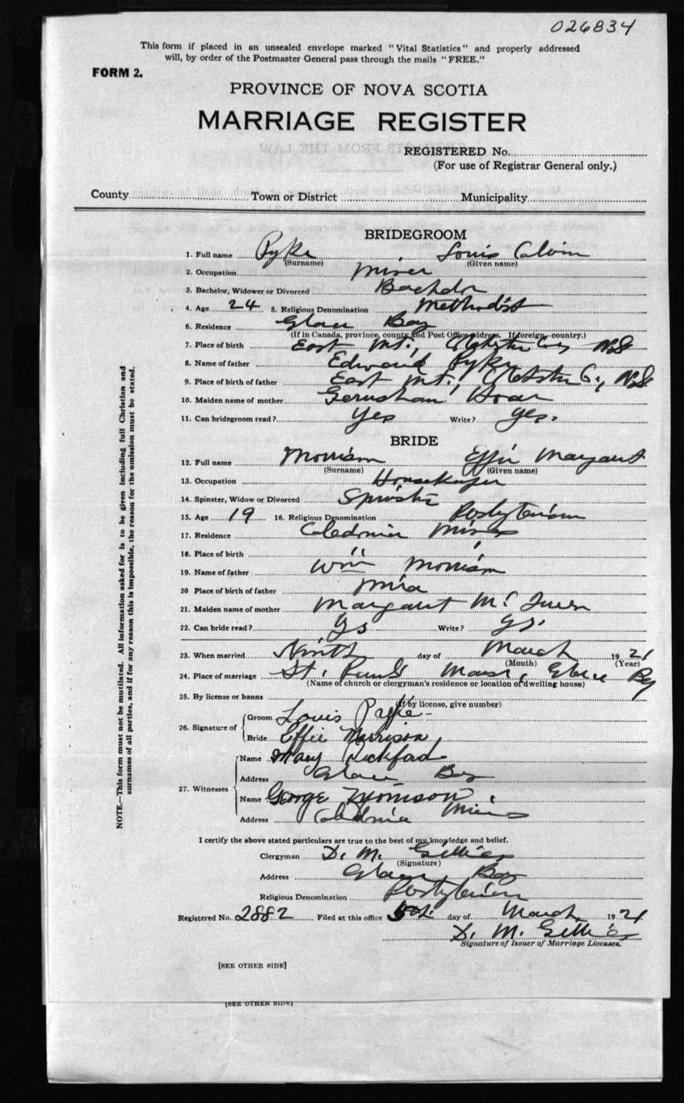 Registration: Year: 1921 number: 26834