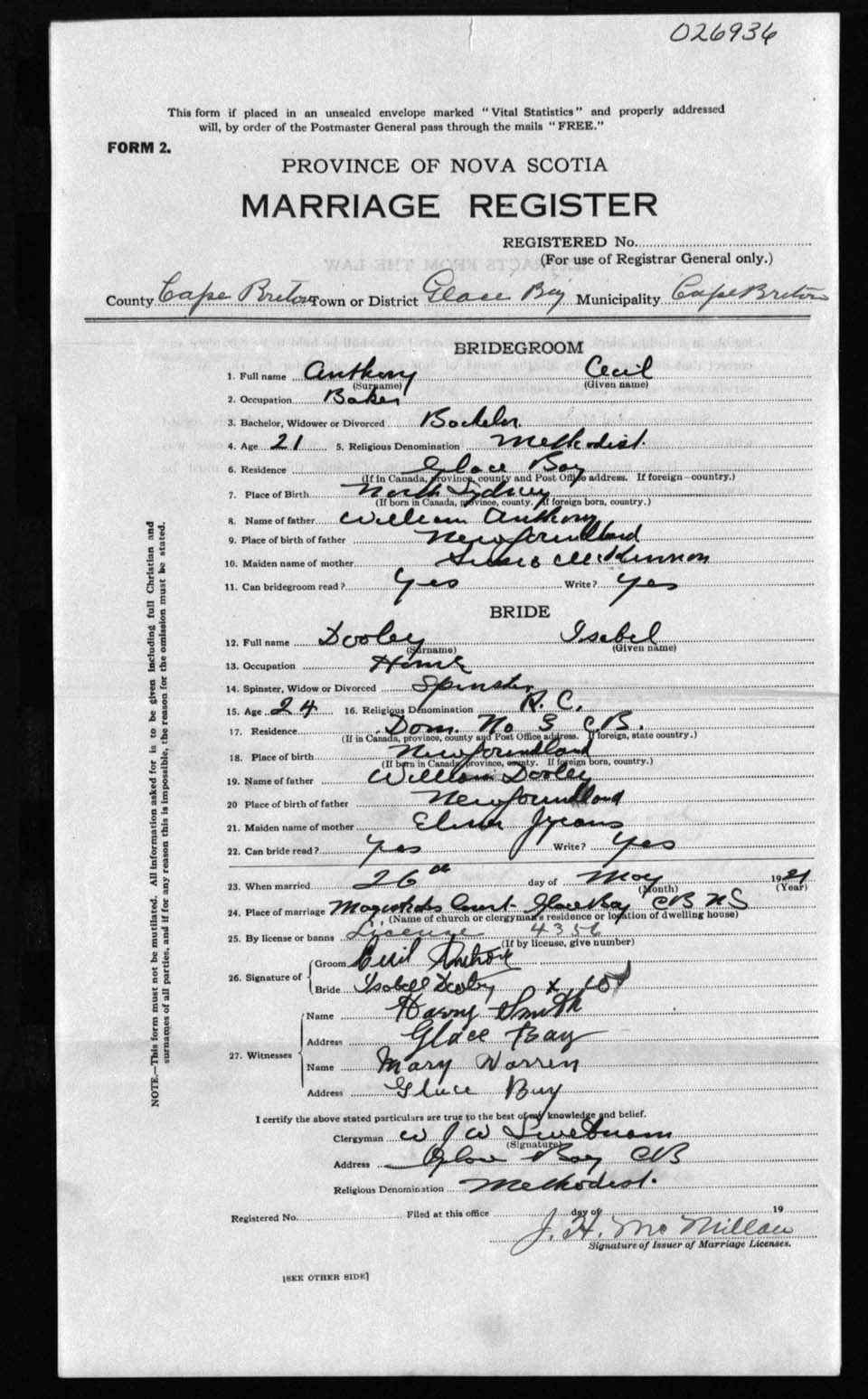 Registration: Year: 1921 number: 26936