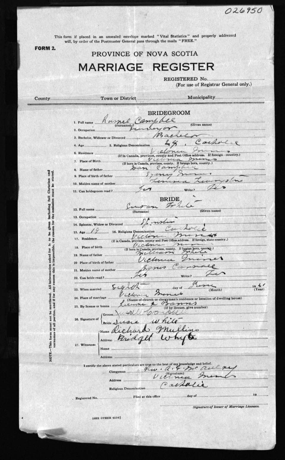 Registration: Year: 1921 number: 26950