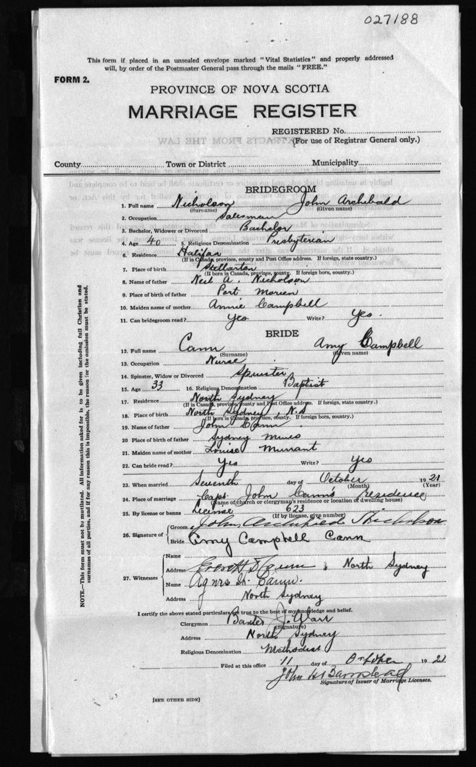 Registration: Year: 1921 number: 27188