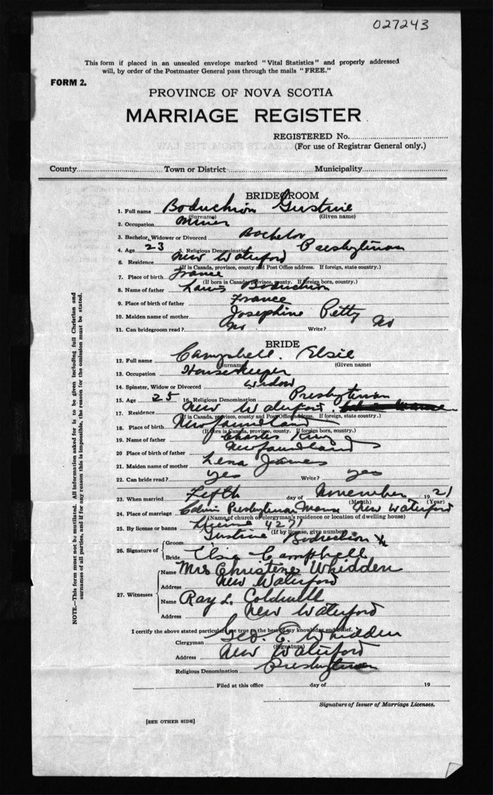 Registration: Year: 1921 number: 27243