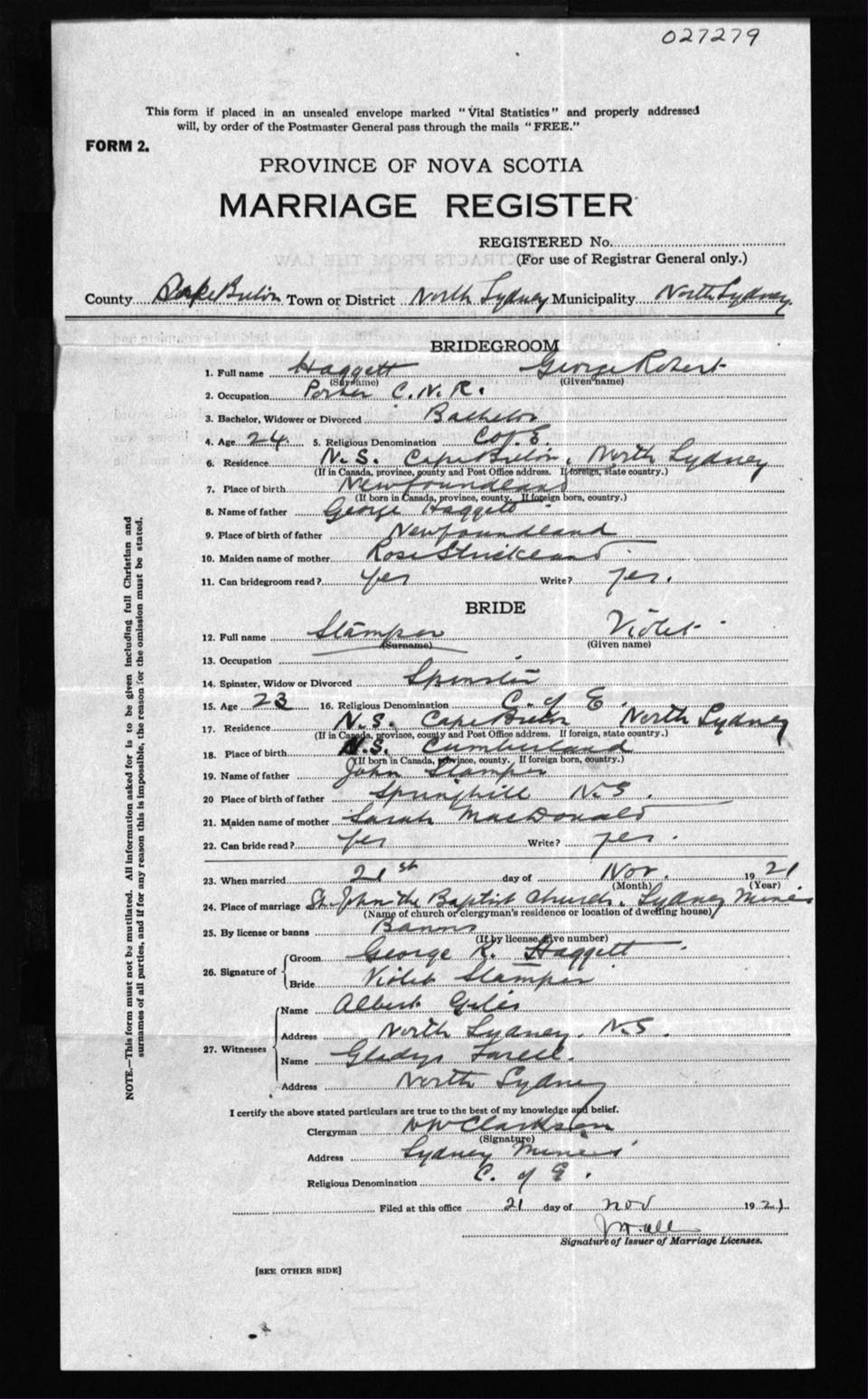 Registration: Year: 1921 number: 27279