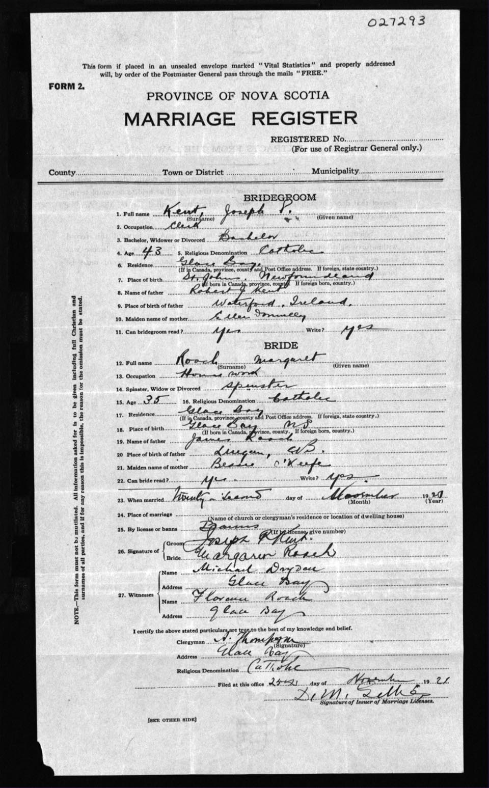 Registration: Year: 1921 number: 27293