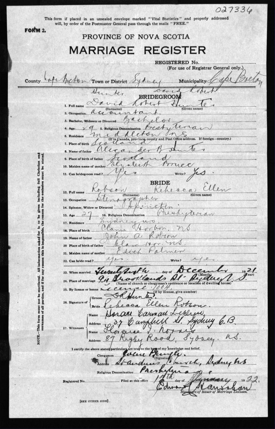 Registration: Year: 1921 number: 27336
