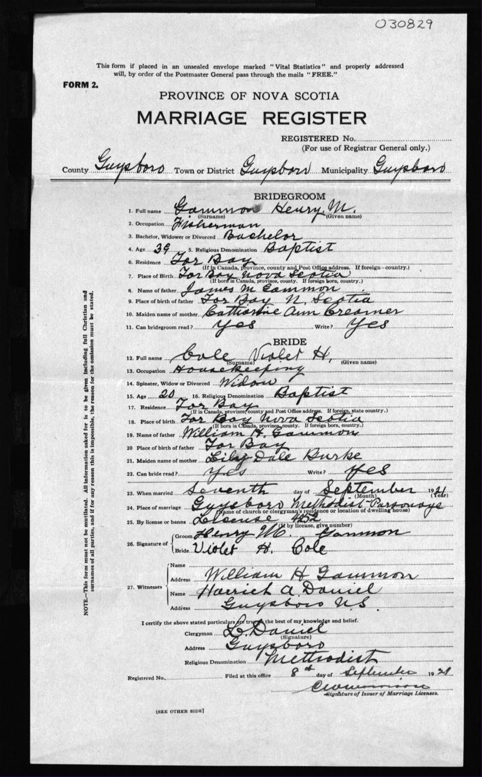 Registration: Year: 1921 number: 30829