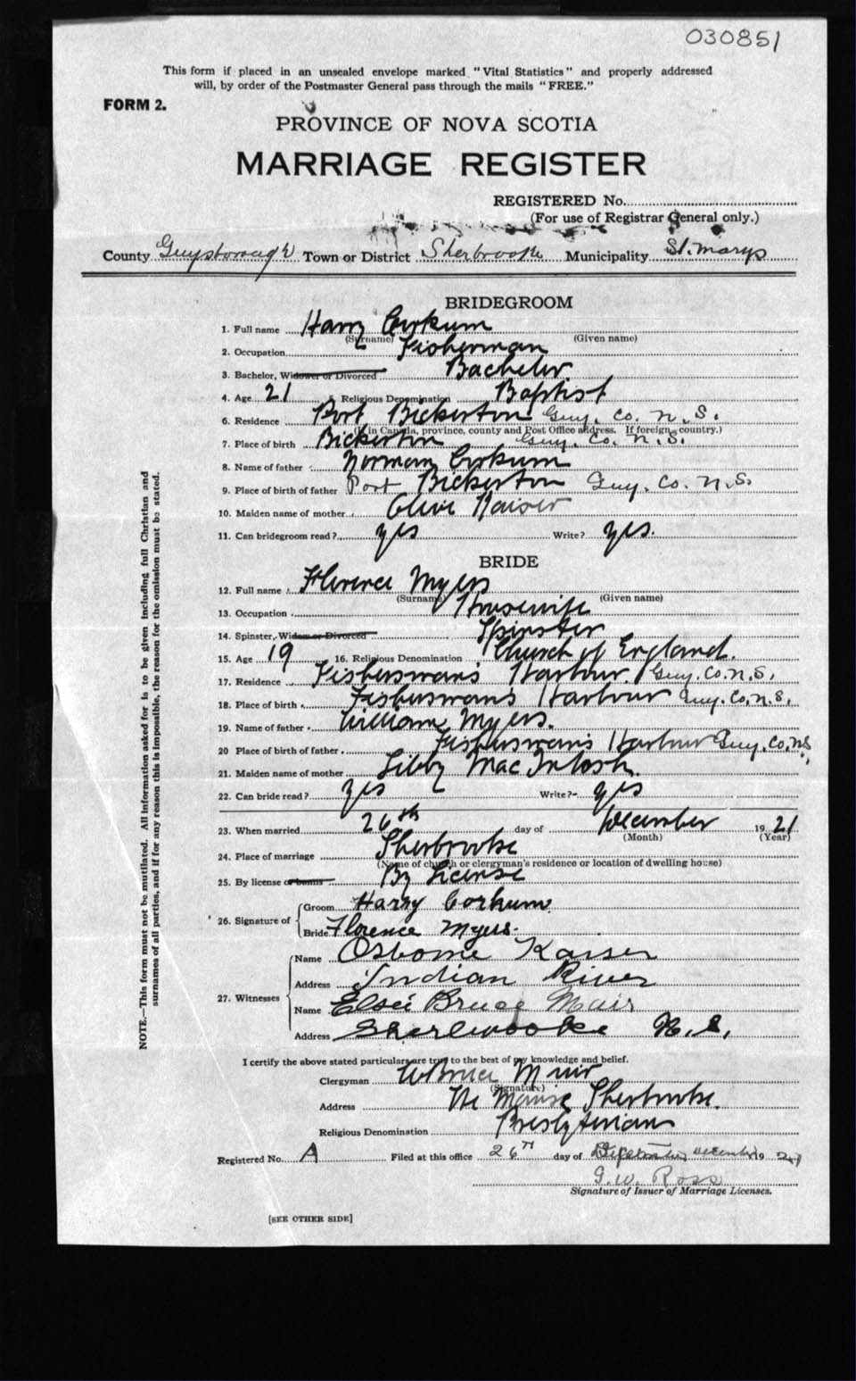 Registration: Year: 1921 number: 30851