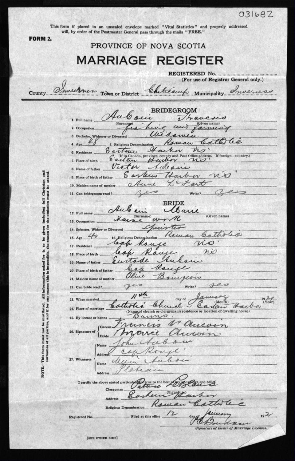 Registration: Year: 1921 number: 31682