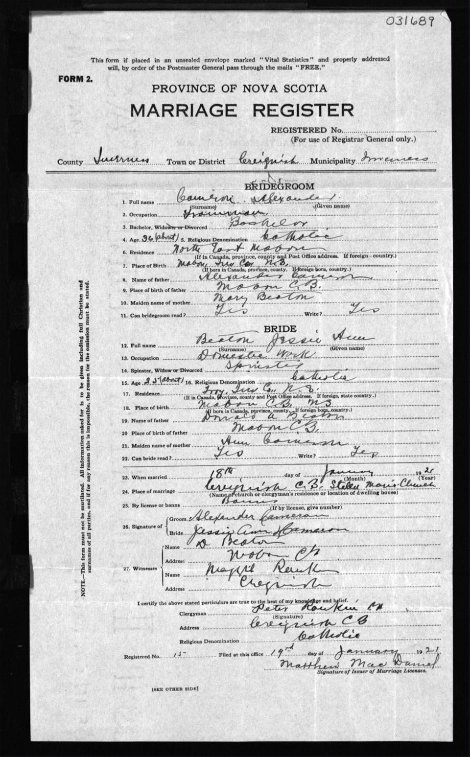 Registration: Year: 1921 number: 31689