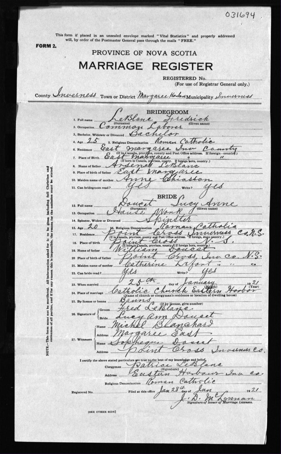 Registration: Year: 1921 number: 31694