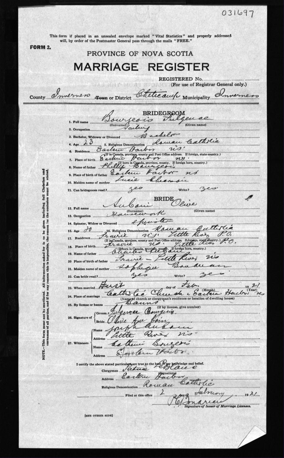 Registration: Year: 1921 number: 31697