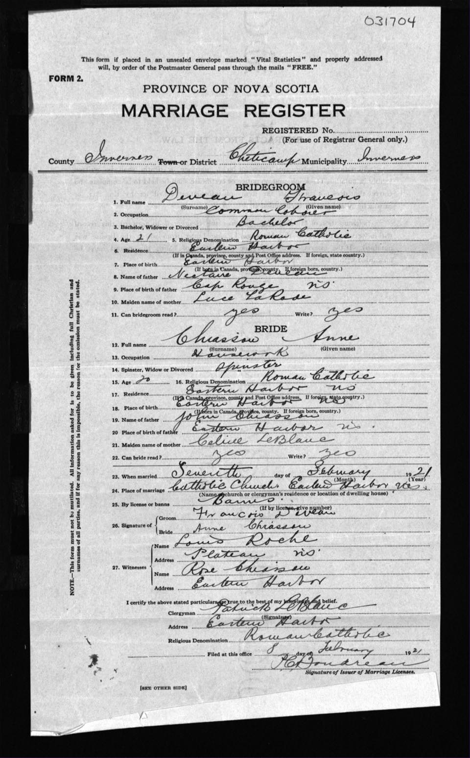Registration: Year: 1921 number: 31704