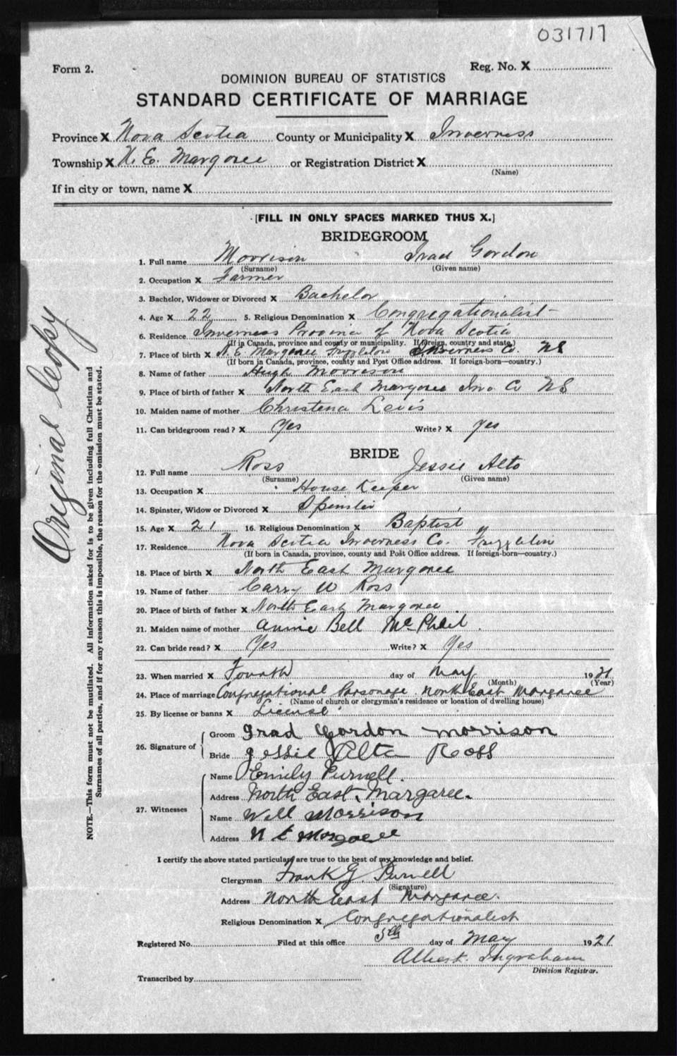 Registration: Year: 1921 number: 31717