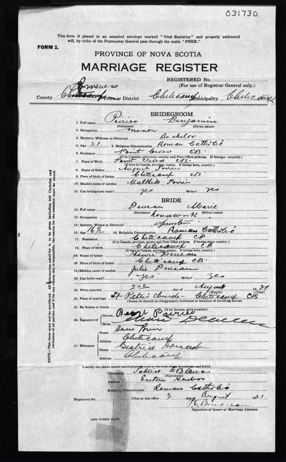Registration: Year: 1921 number: 31730