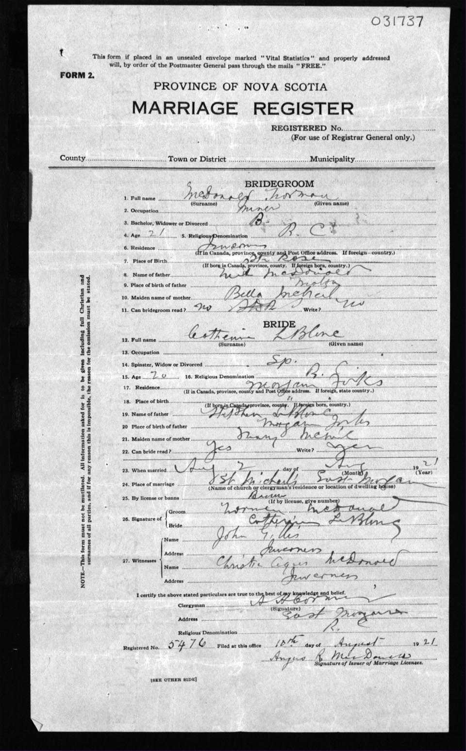 Registration: Year: 1921 number: 31737
