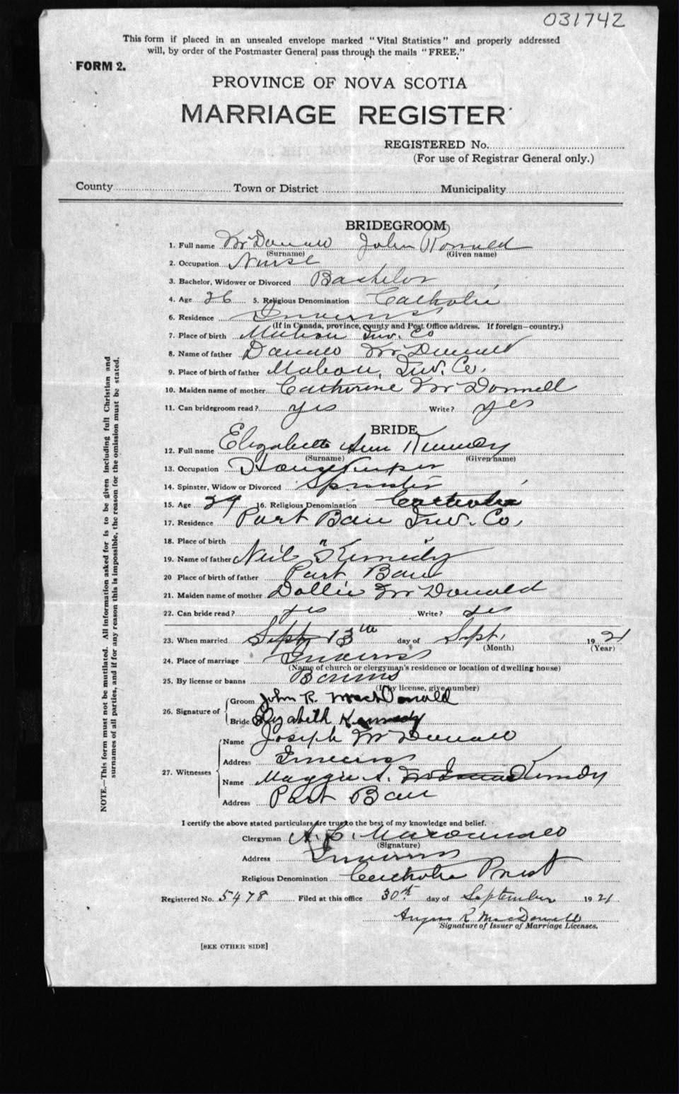 Registration: Year: 1921 number: 31742