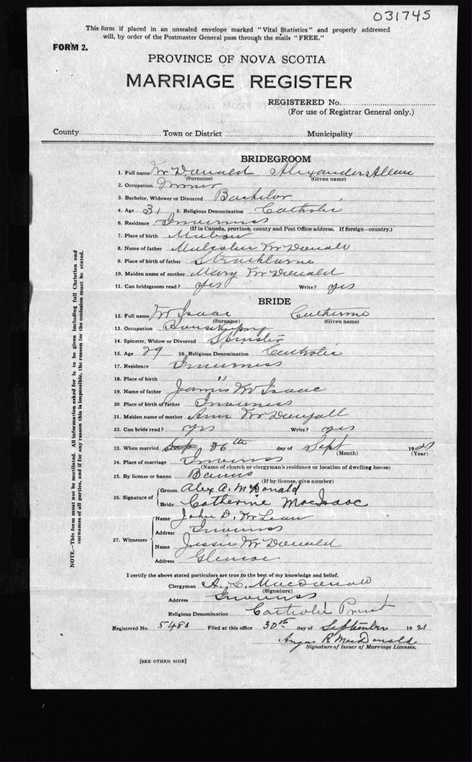 Registration: Year: 1921 number: 31745