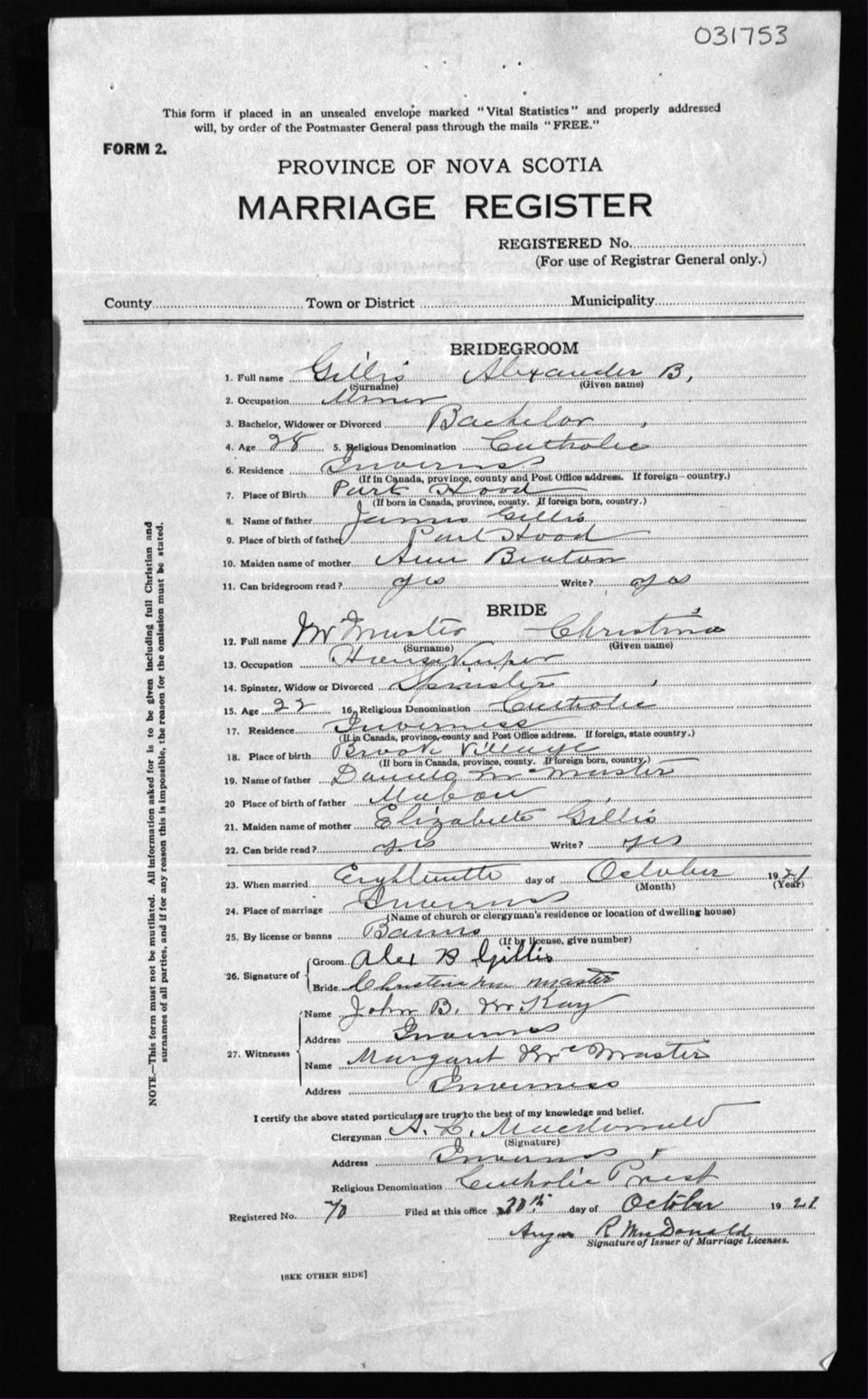 Registration: Year: 1921 number: 31753