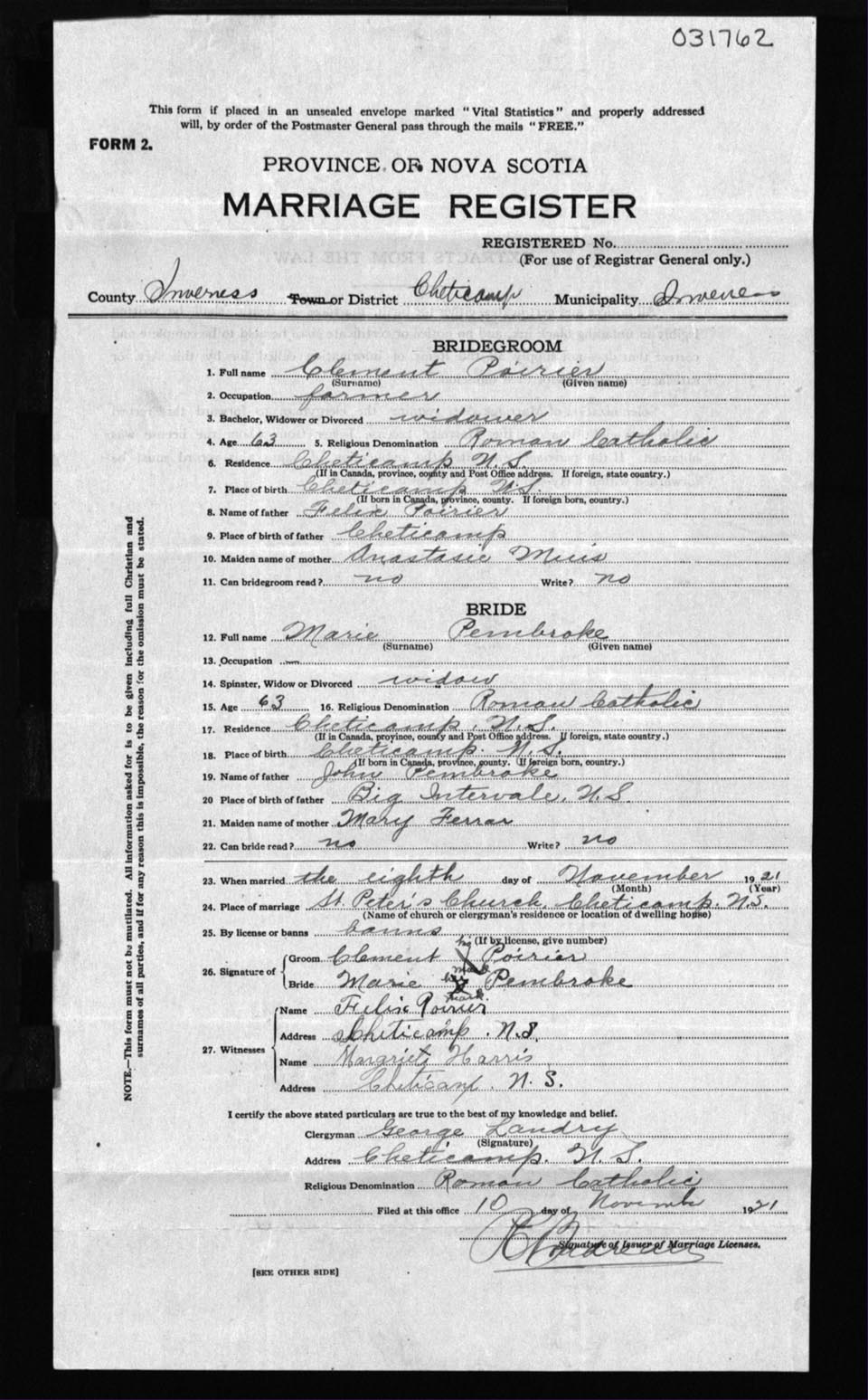 Registration: Year: 1921 number: 31762