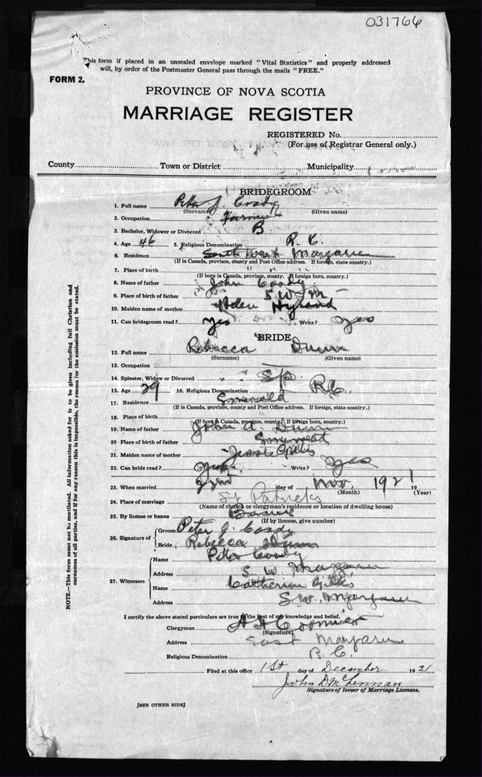 Registration: Year: 1921 number: 31766