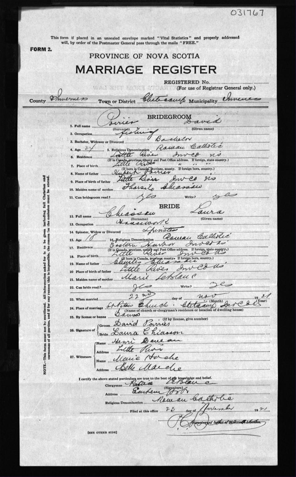 Registration: Year: 1921 number: 31767