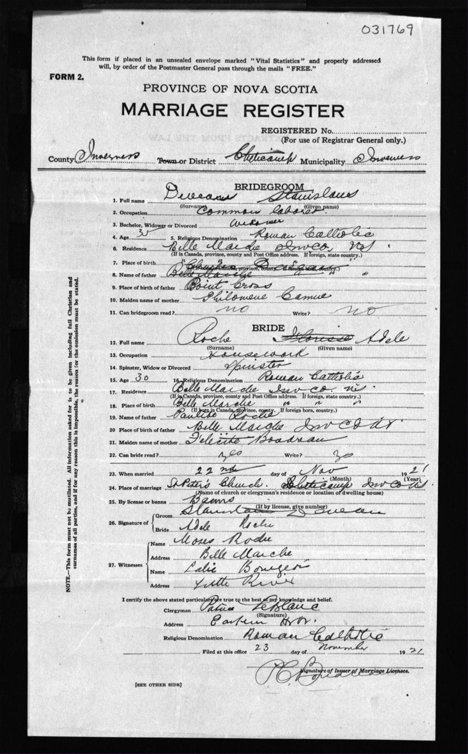 Registration: Year: 1921 number: 31769