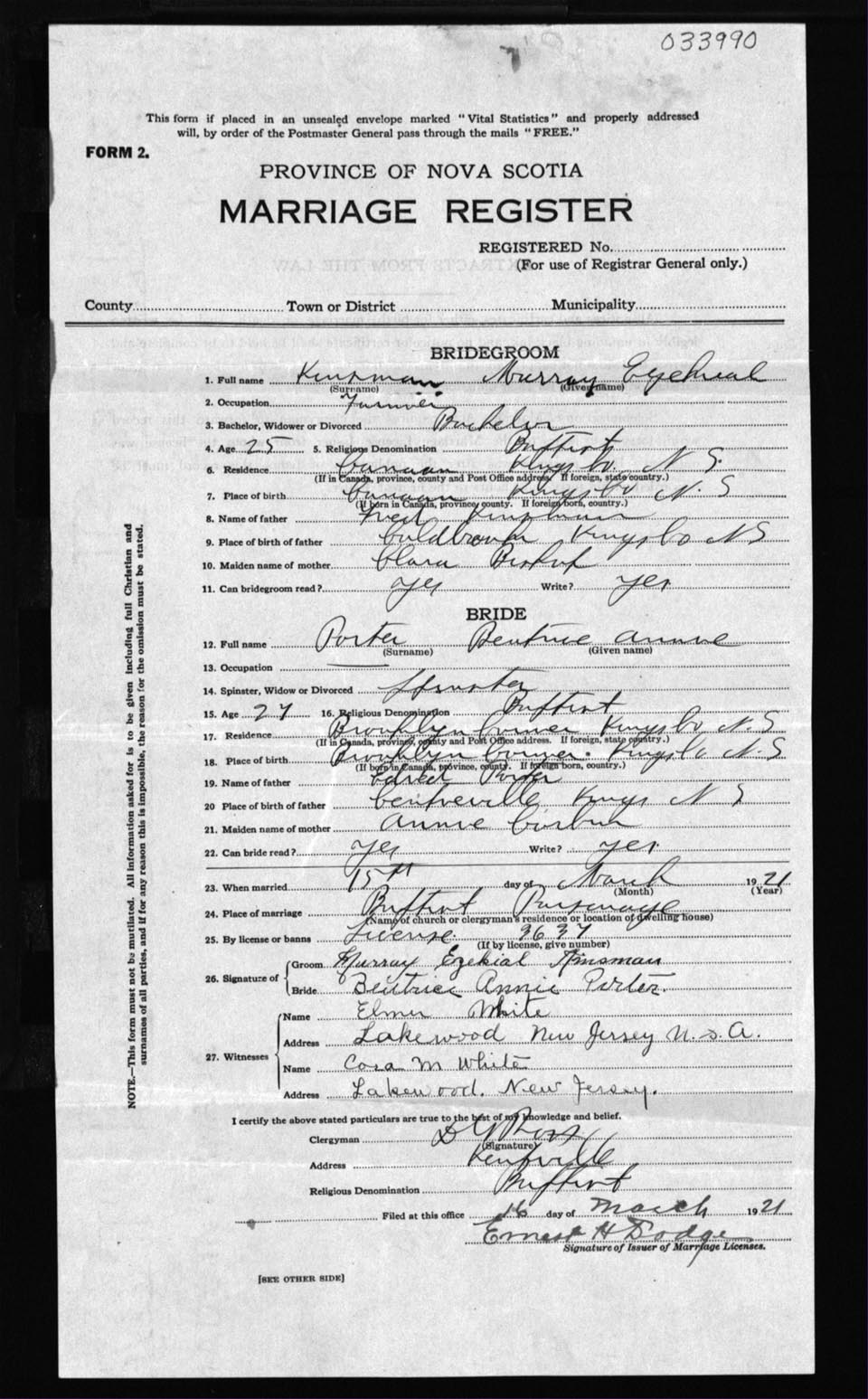 Registration: Year: 1921 number: 33990