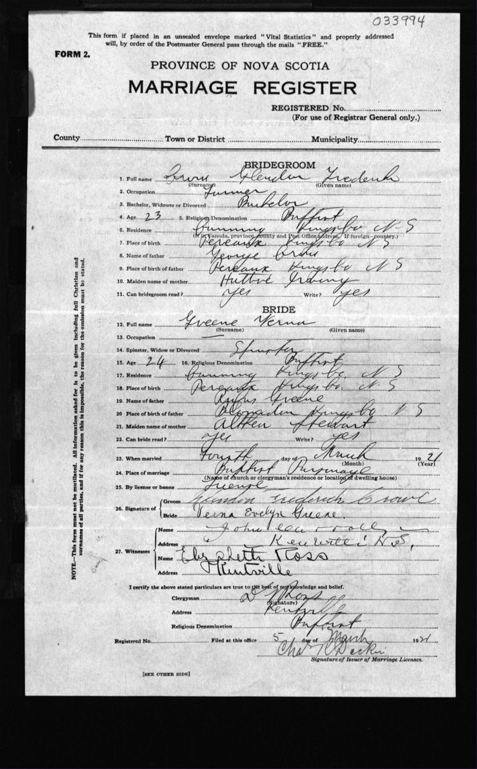 Registration: Year: 1921 number: 33994