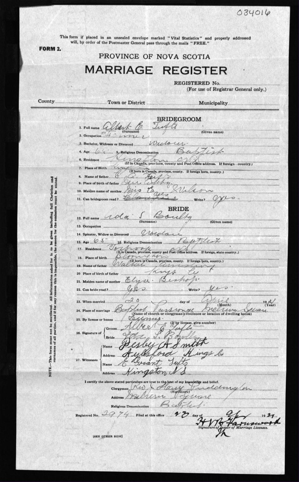 Registration: Year: 1921 number: 3416