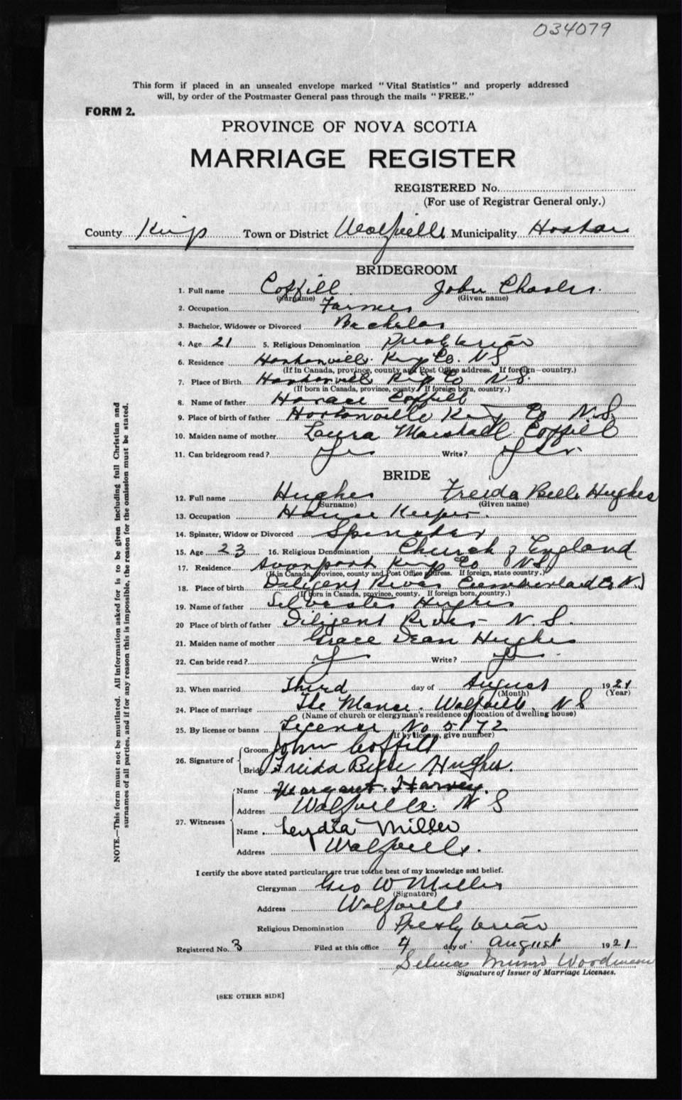 Registration: Year: 1921 number: 3479