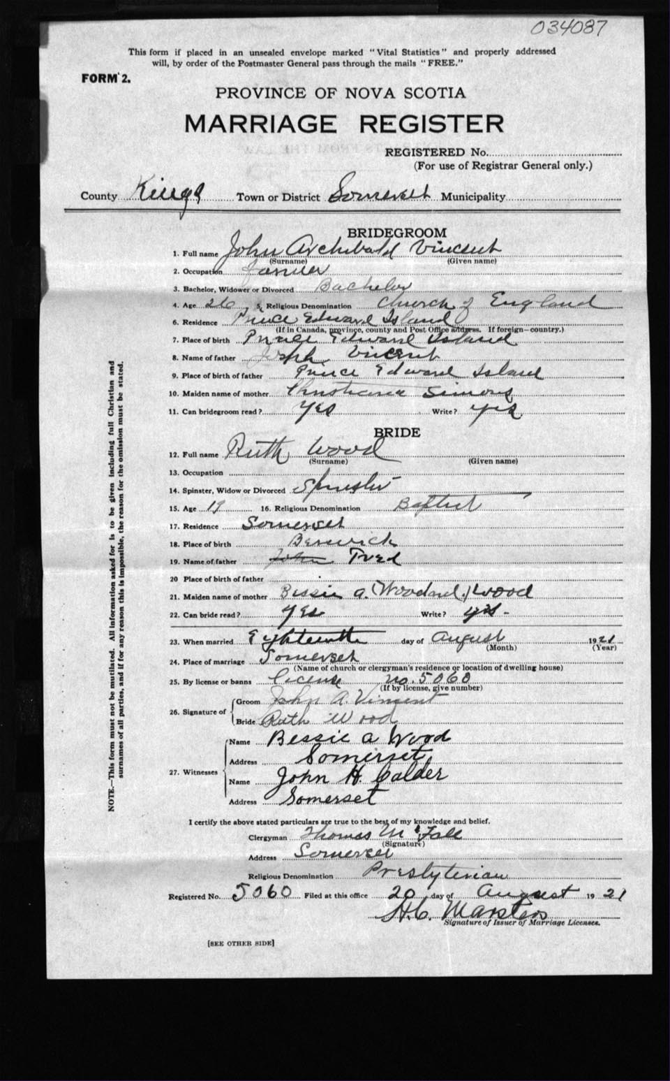 Registration: Year: 1921 number: 3487