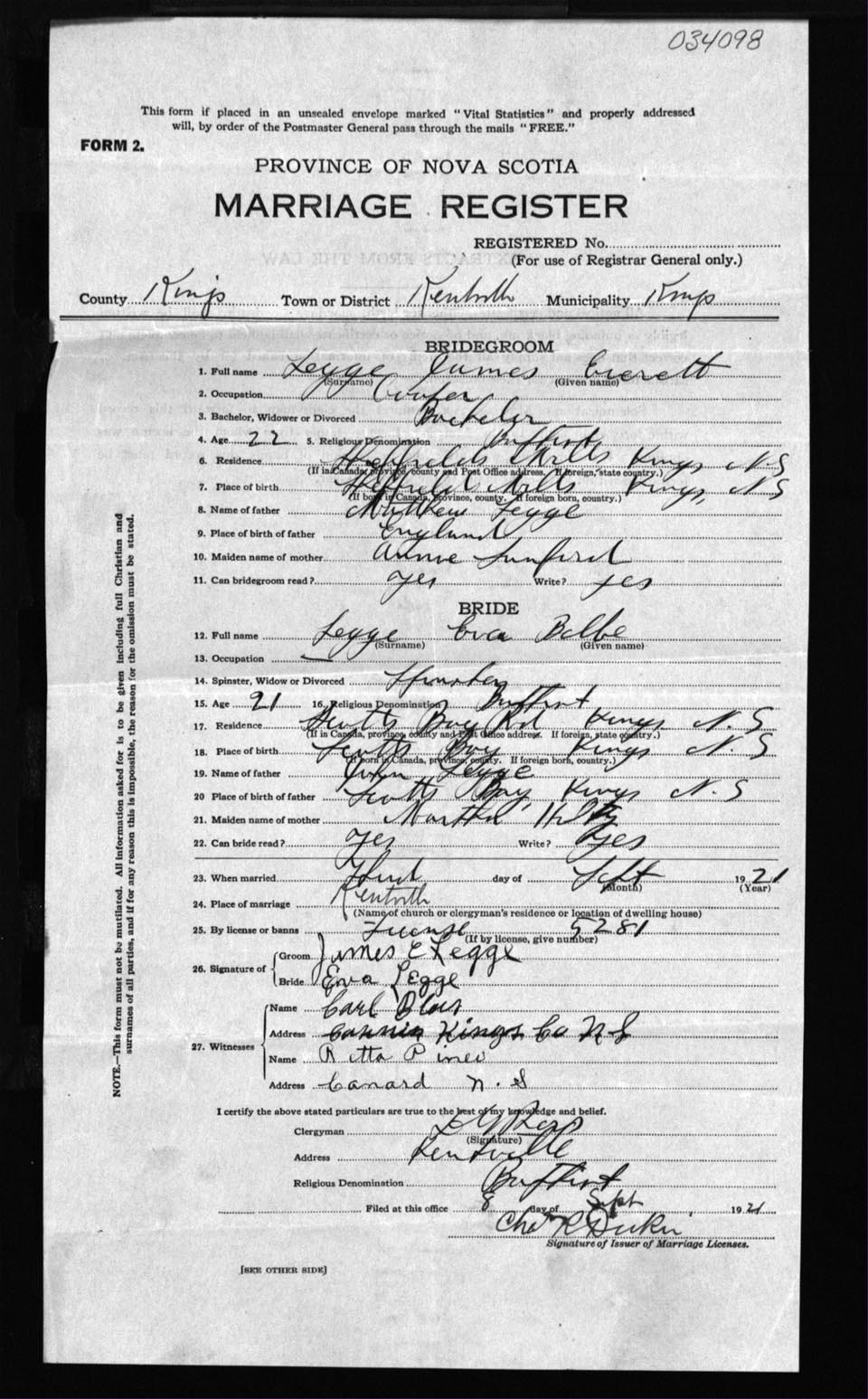 Registration: Year: 1921 number: 3498