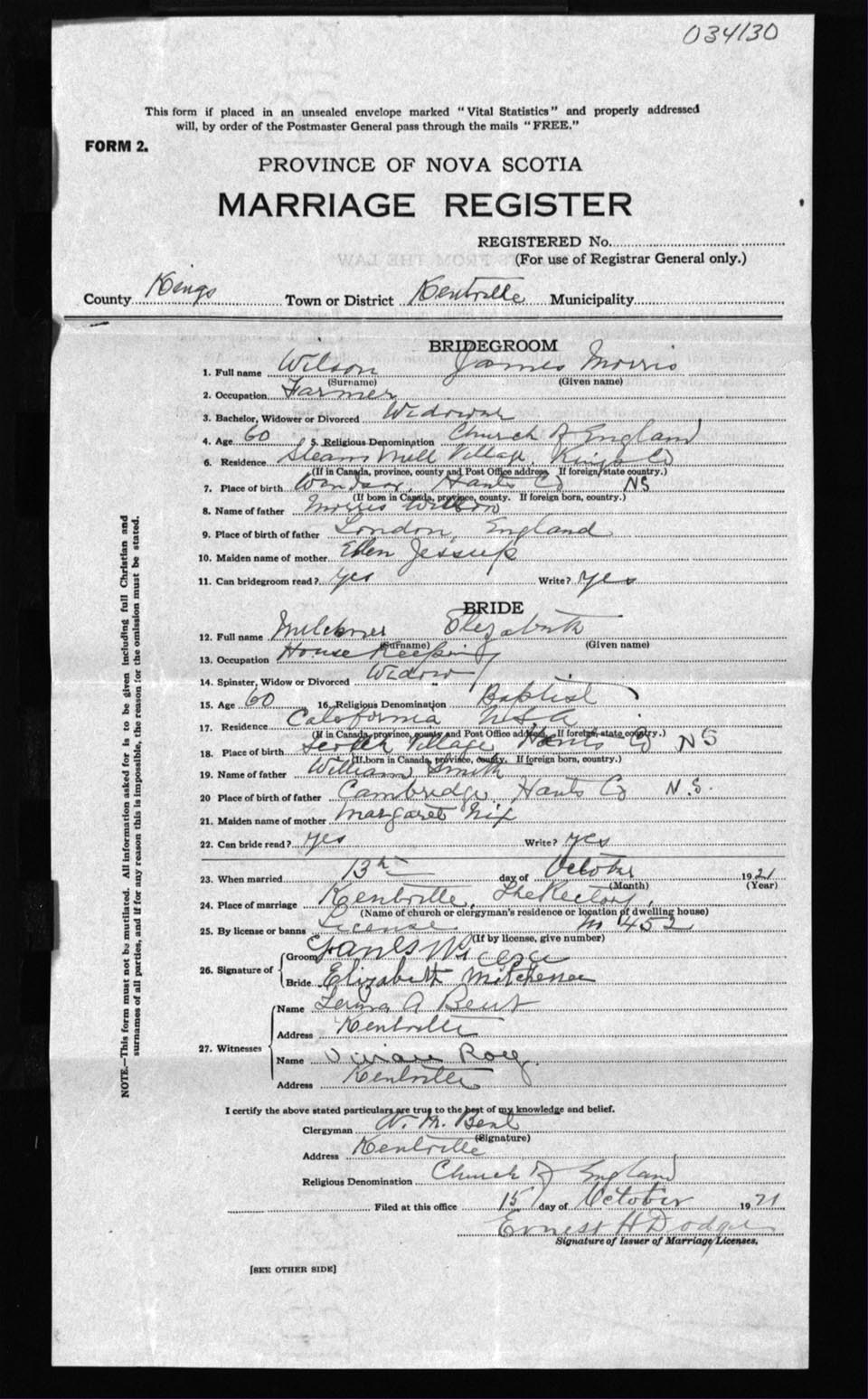 Registration: Year: 1921 number: 34130