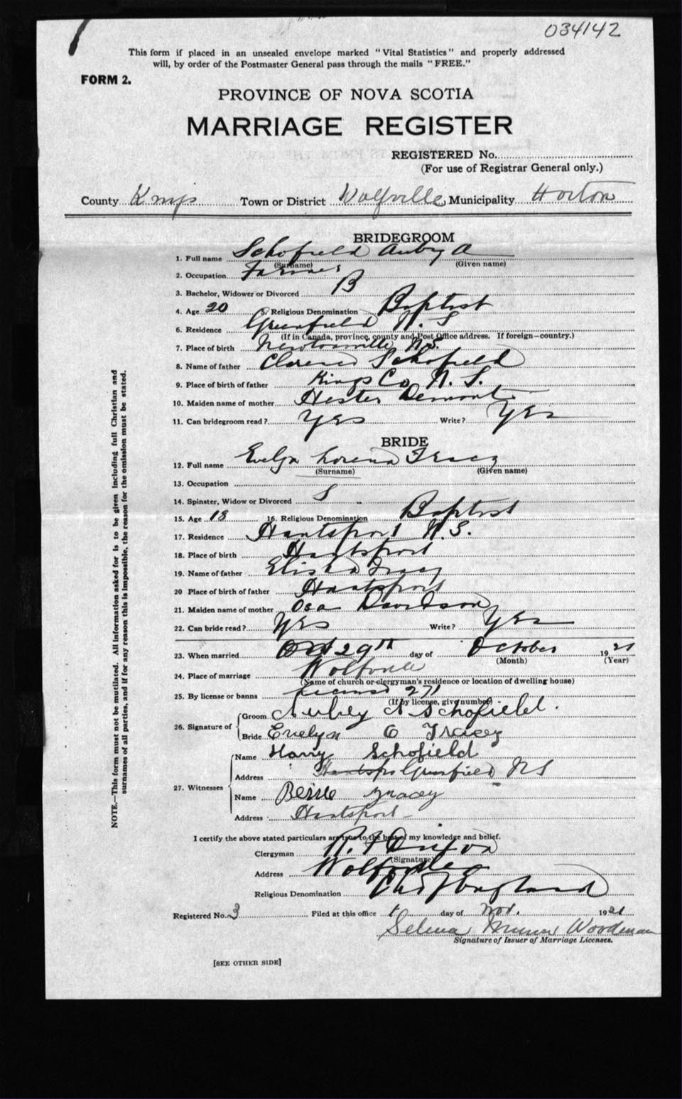 Registration: Year: 1921 number: 34142