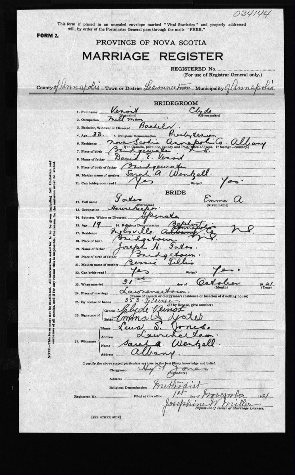 Registration: Year: 1921 number: 34144