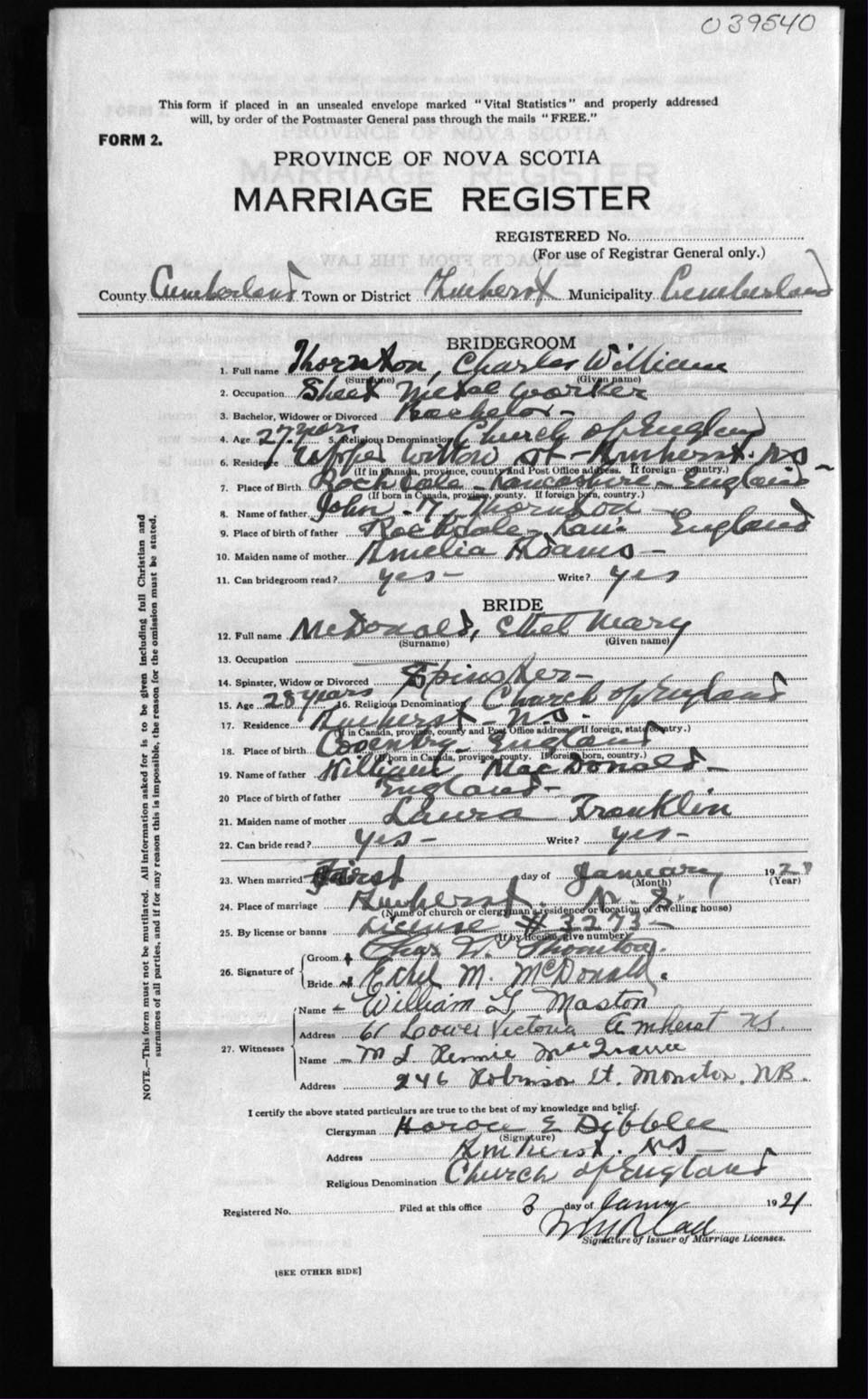 Registration: Year: 1921 number: 39540
