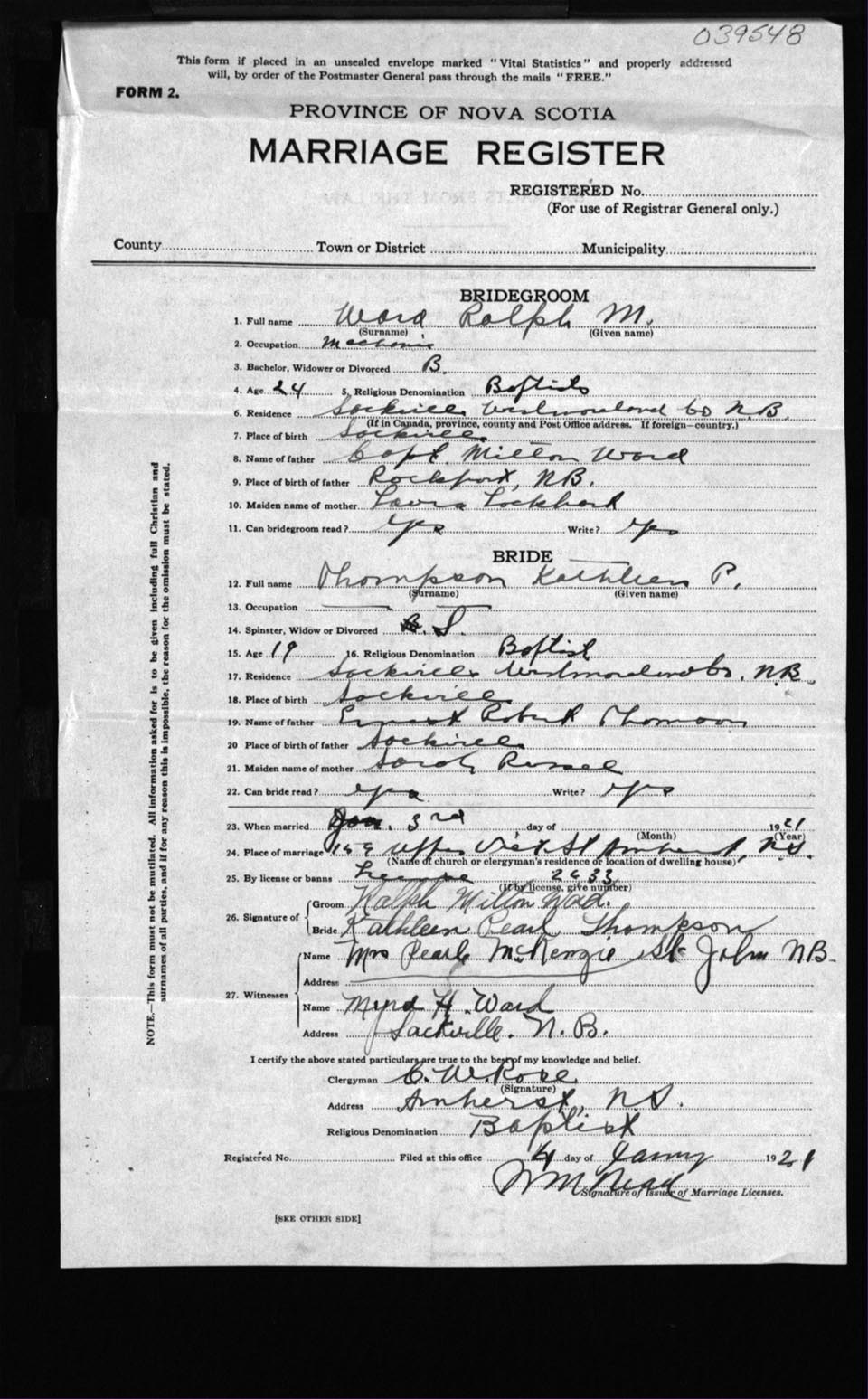 Registration: Year: 1921 number: 39548