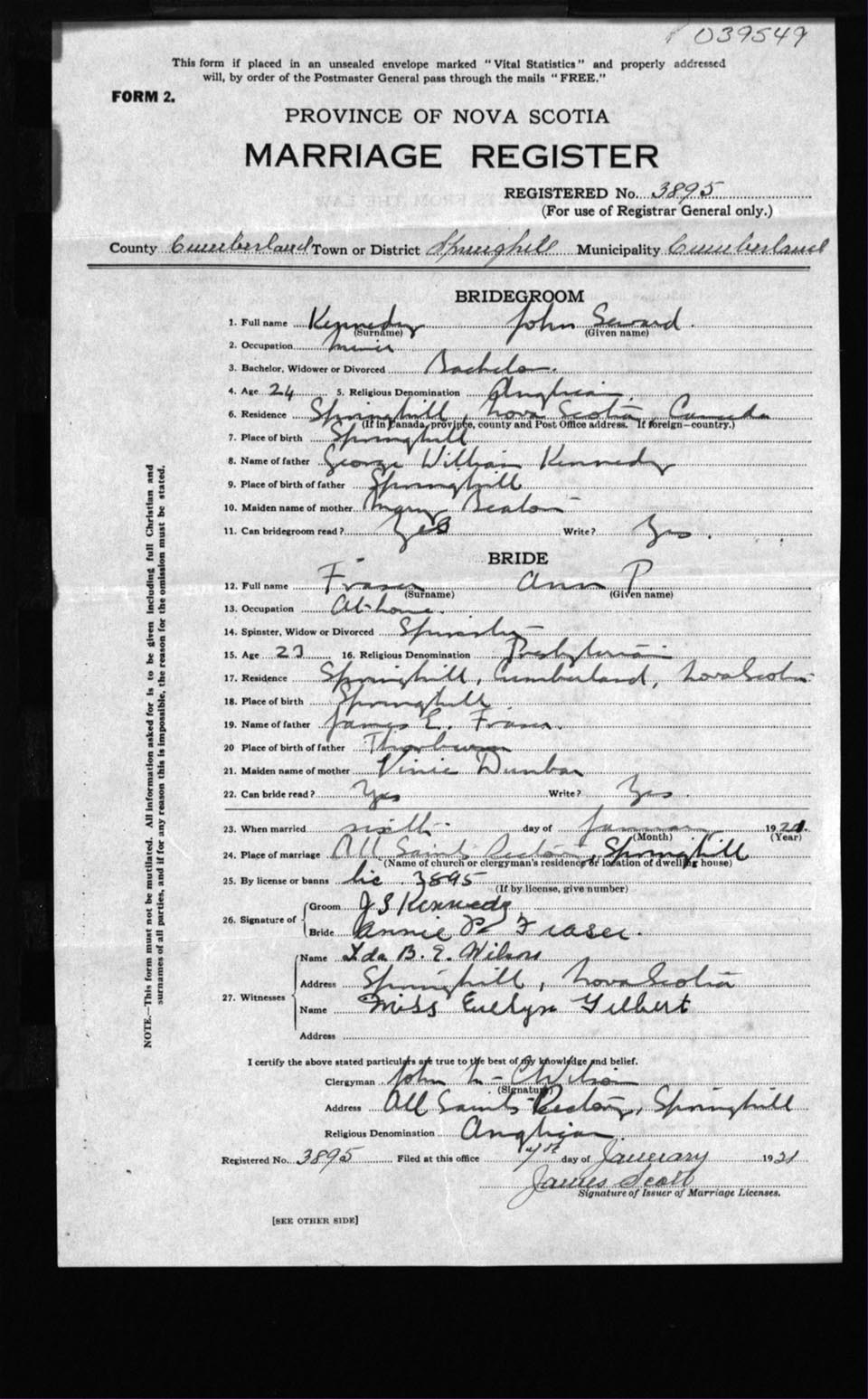 Registration: Year: 1921 number: 39549