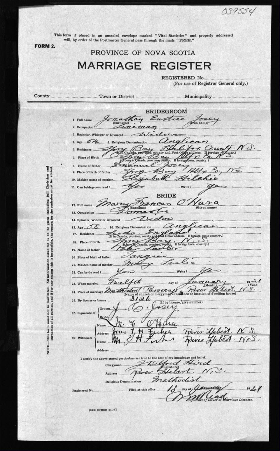 Registration: Year: 1921 number: 39554
