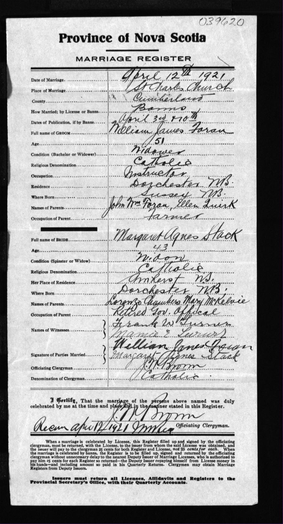 Registration: Year: 1921 number: 39620