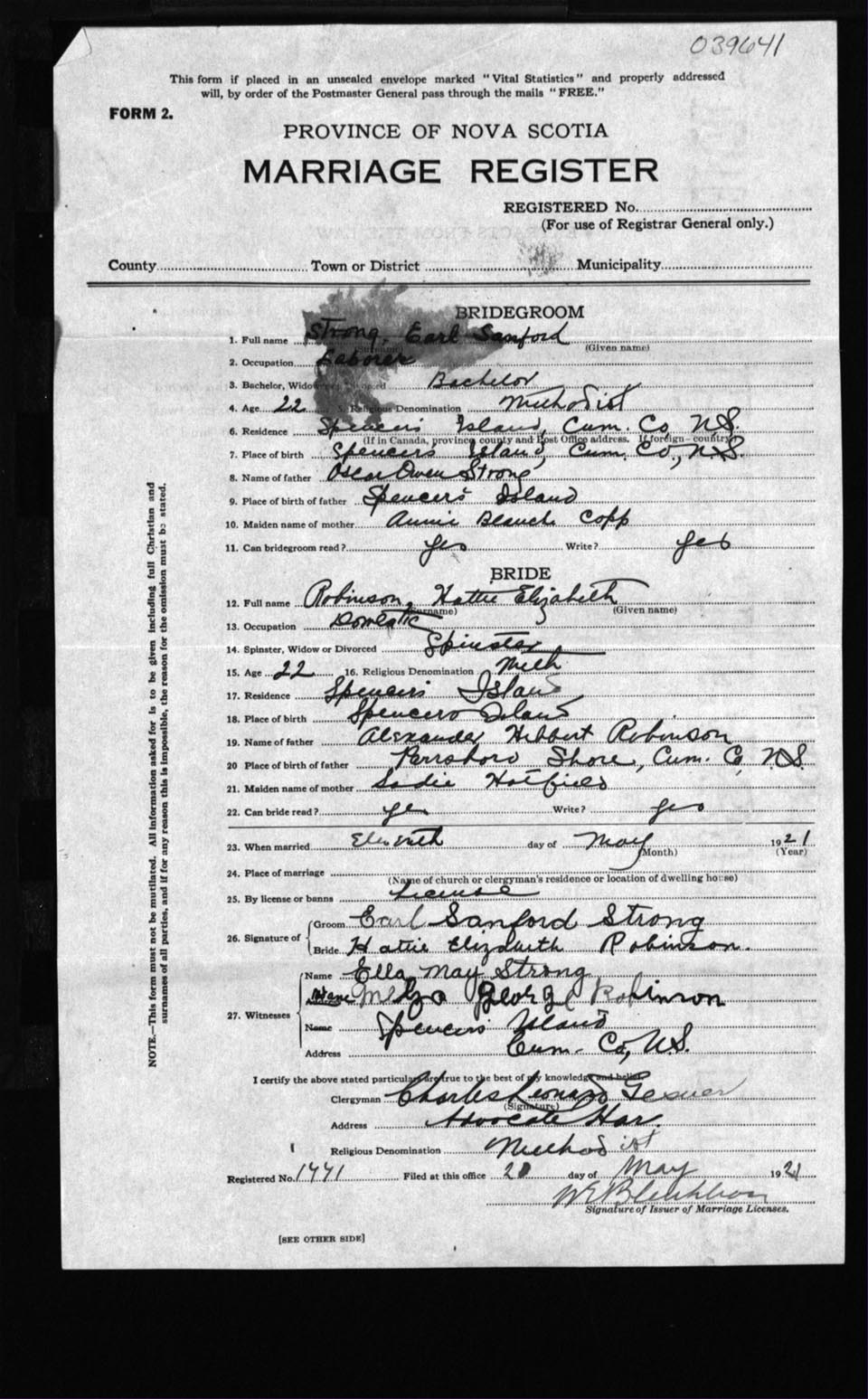 Registration: Year: 1921 number: 39641