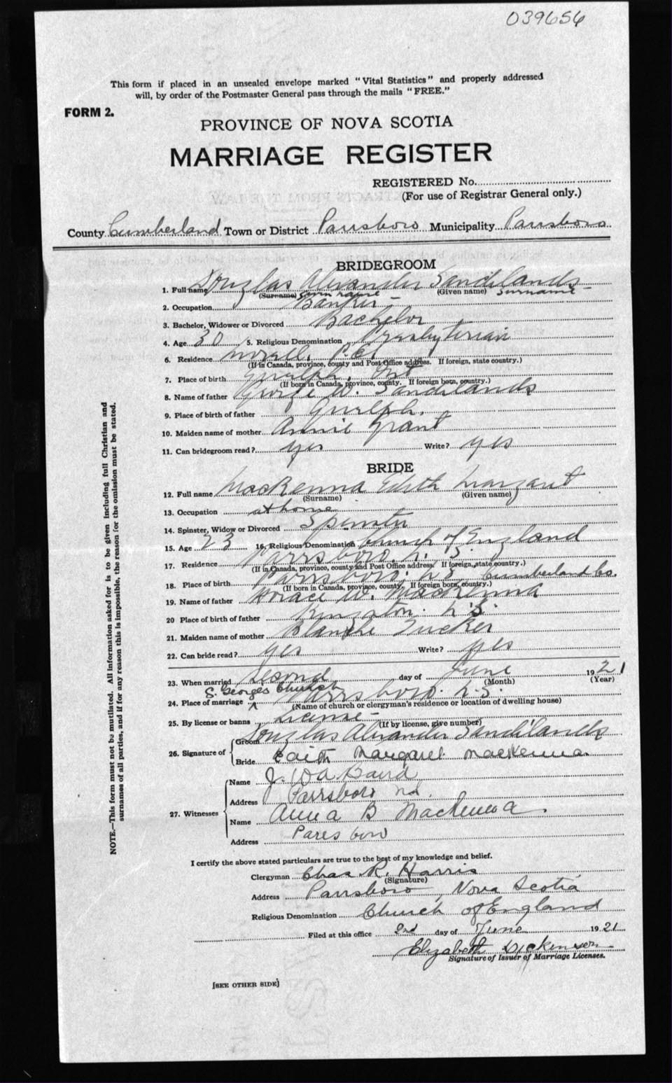 Registration: Year: 1921 number: 39656