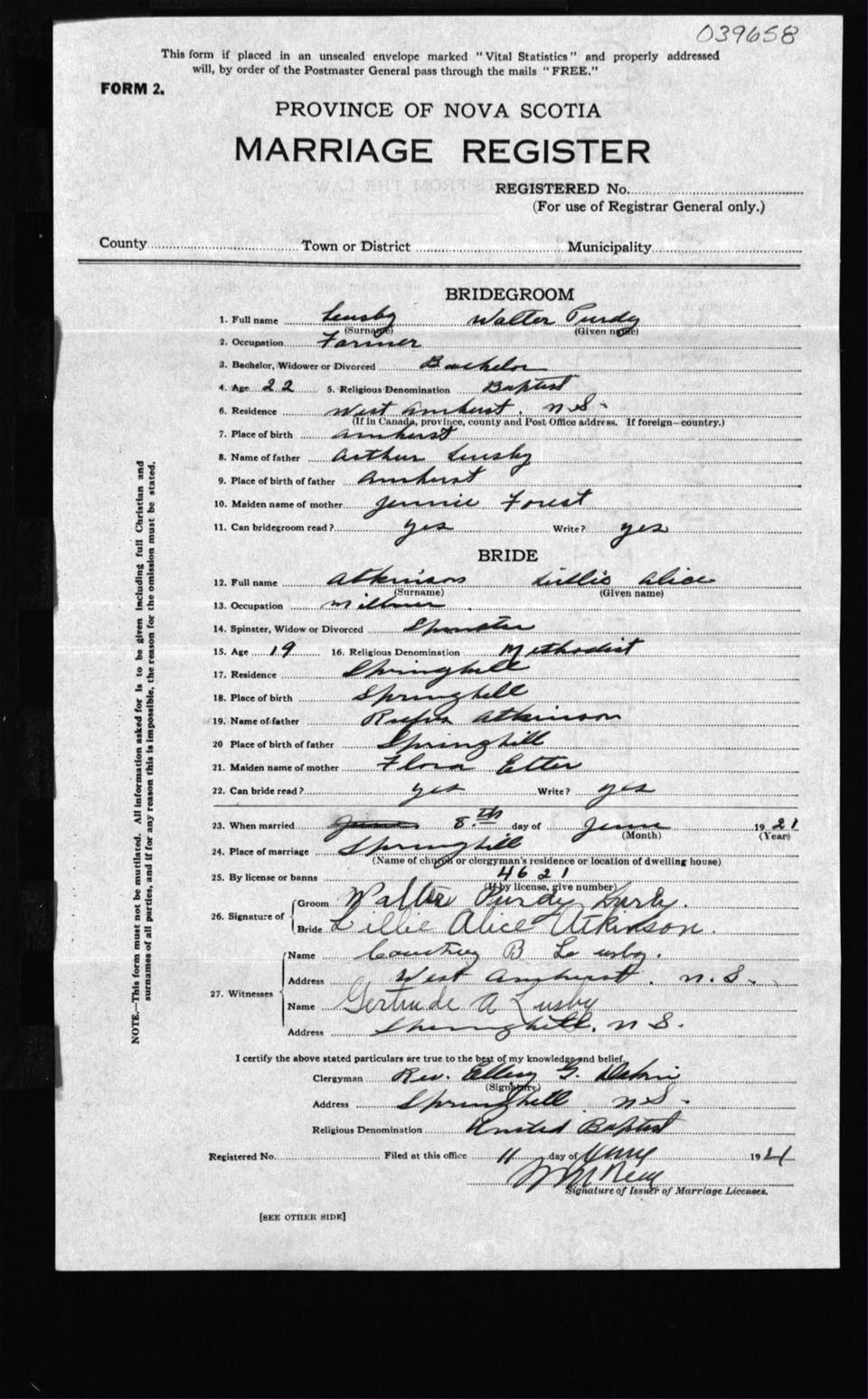 Registration: Year: 1921 number: 39658