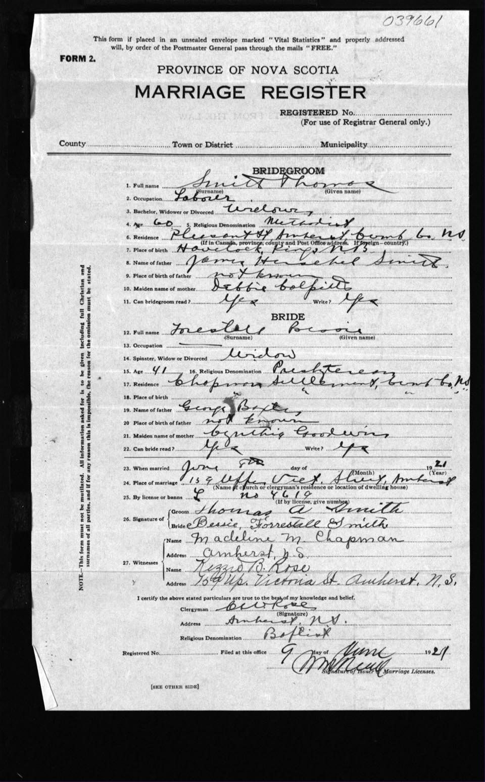 Registration: Year: 1921 number: 39661