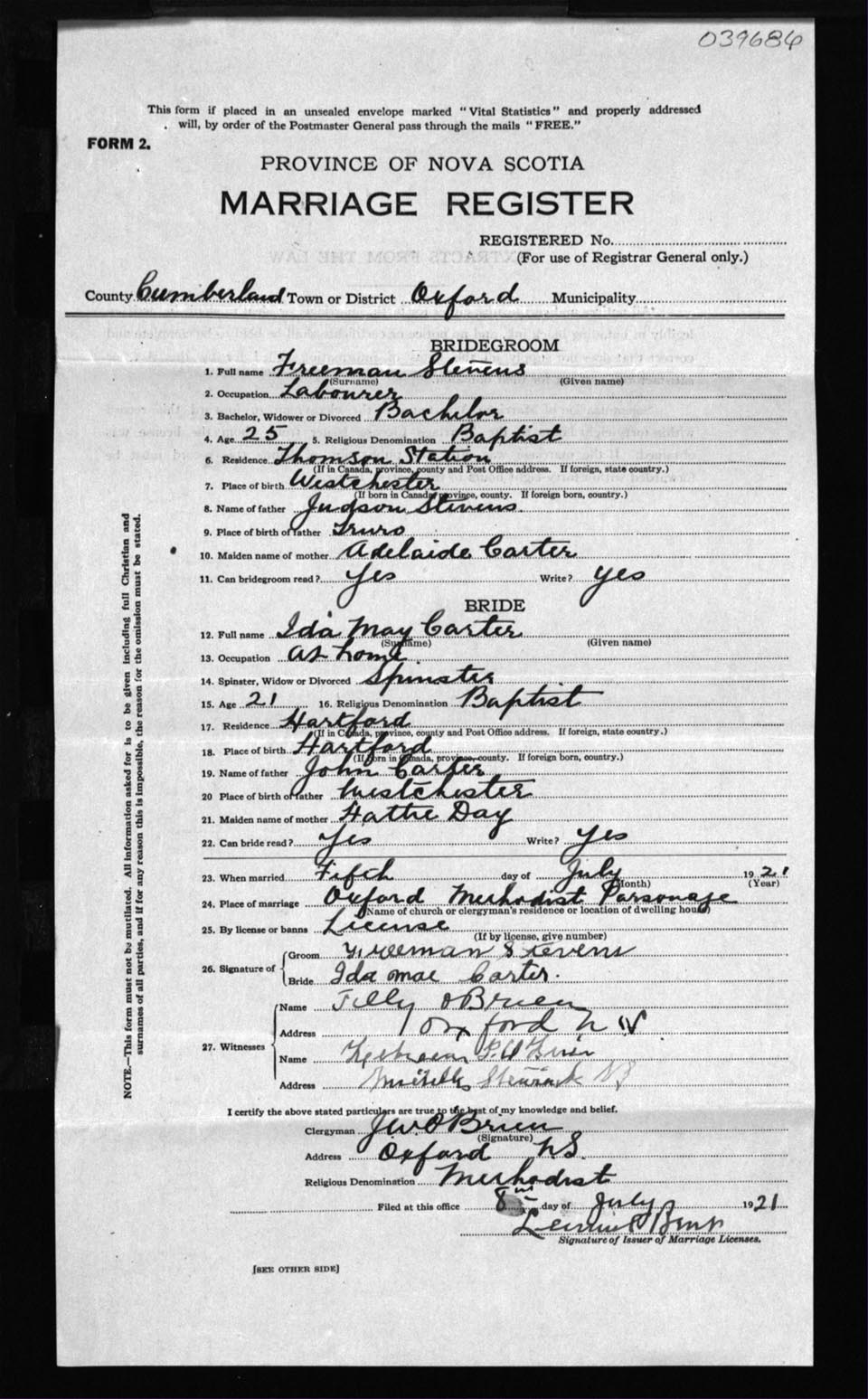 Registration: Year: 1921 number: 39686