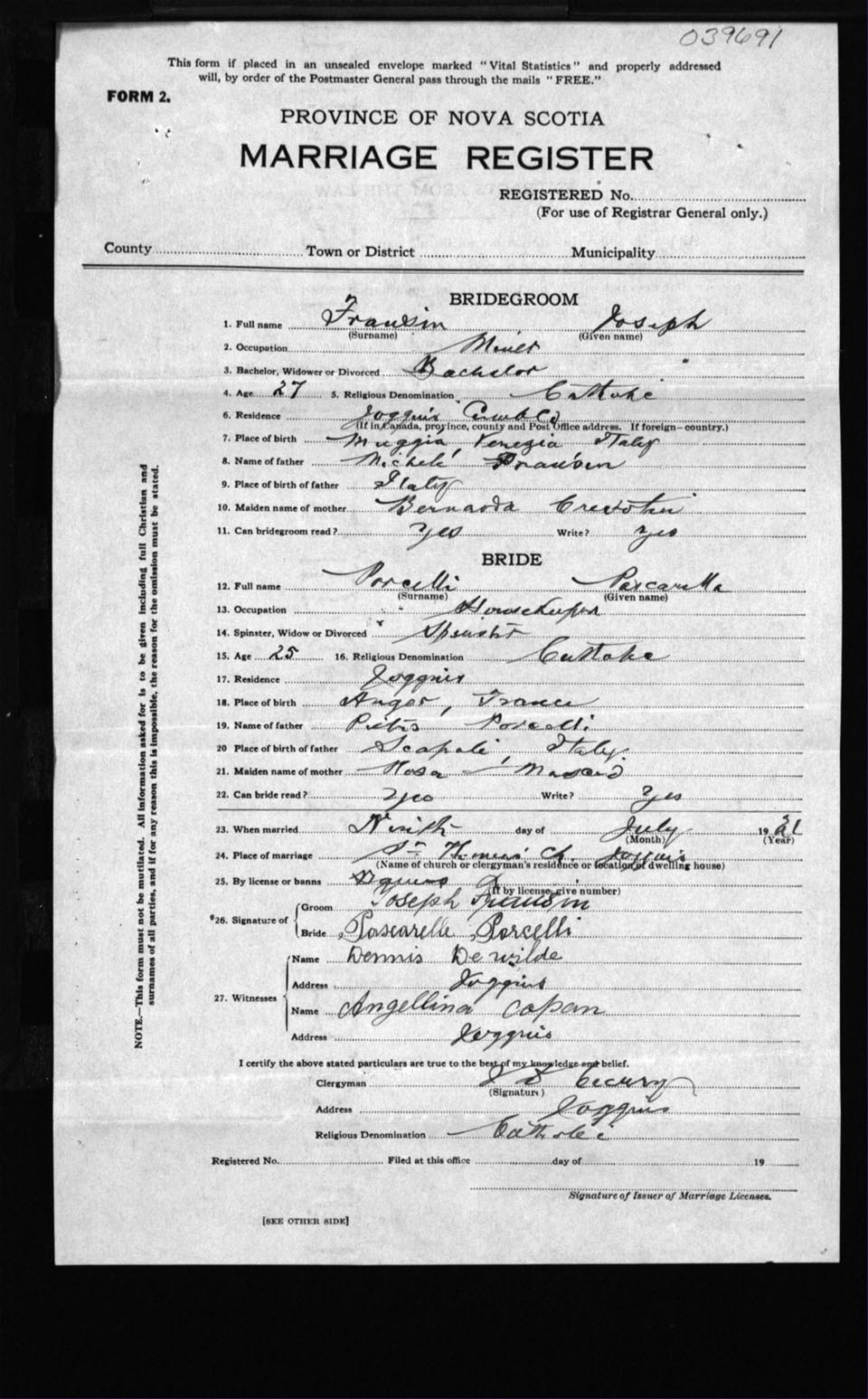 Registration: Year: 1921 number: 39691