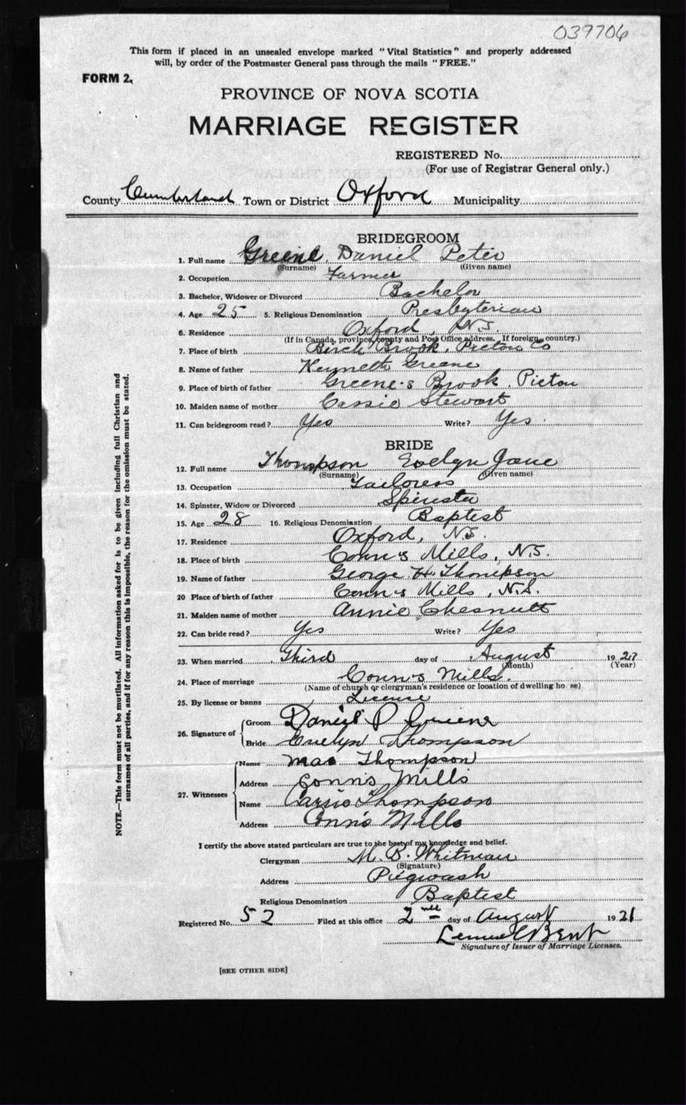 Registration: Year: 1921 number: 39706