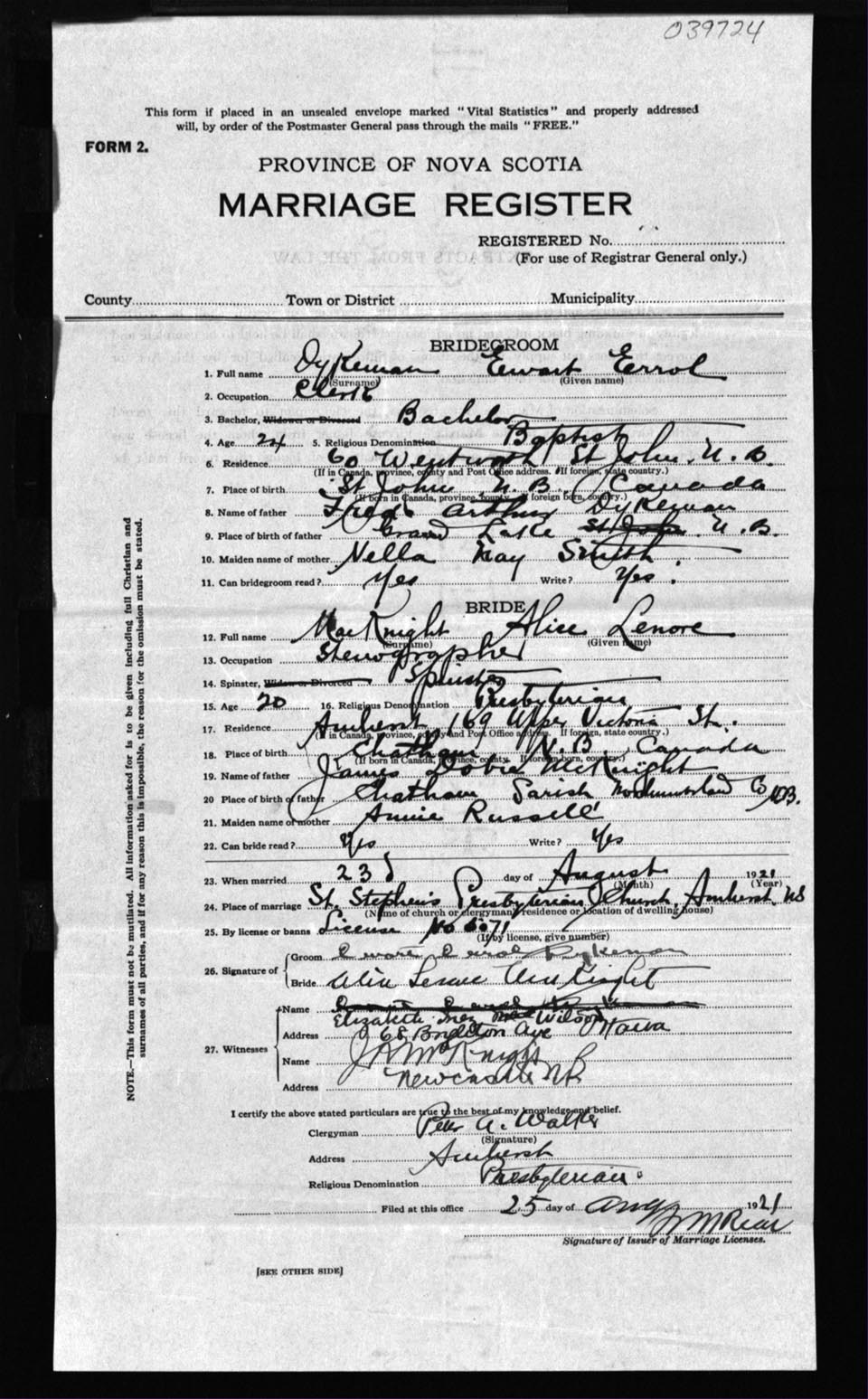Registration: Year: 1921 number: 39724