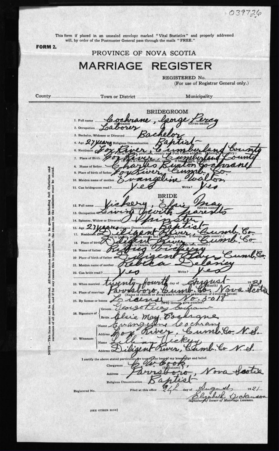Registration: Year: 1921 number: 39726